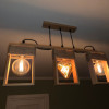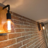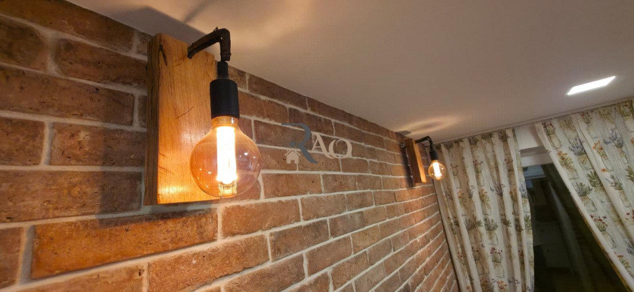 -iluminat atent poziționat, care pune în valoare textura cărămizii aparente și lemnul natural